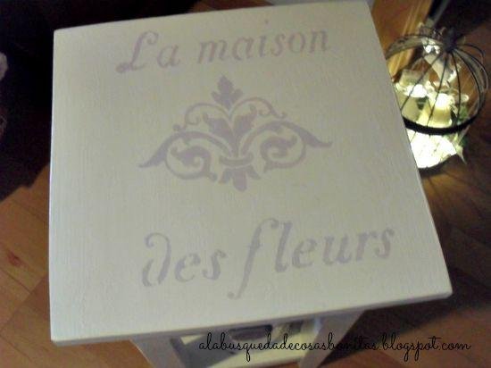A su vez, Luz del blog A la búsqueda de cosas bonitas nos sorprende con un cambio radical pintando una pequeña y oscura mesita con chalk finish en crema y gris. esta pintura permite pintar directamente sin tener que eliminar el acabado original. Además utiliza la técnica del estarcido para el sobre. Aquí podéis ver todos los detalles. Como os decía ¡el cambio es espectacular!