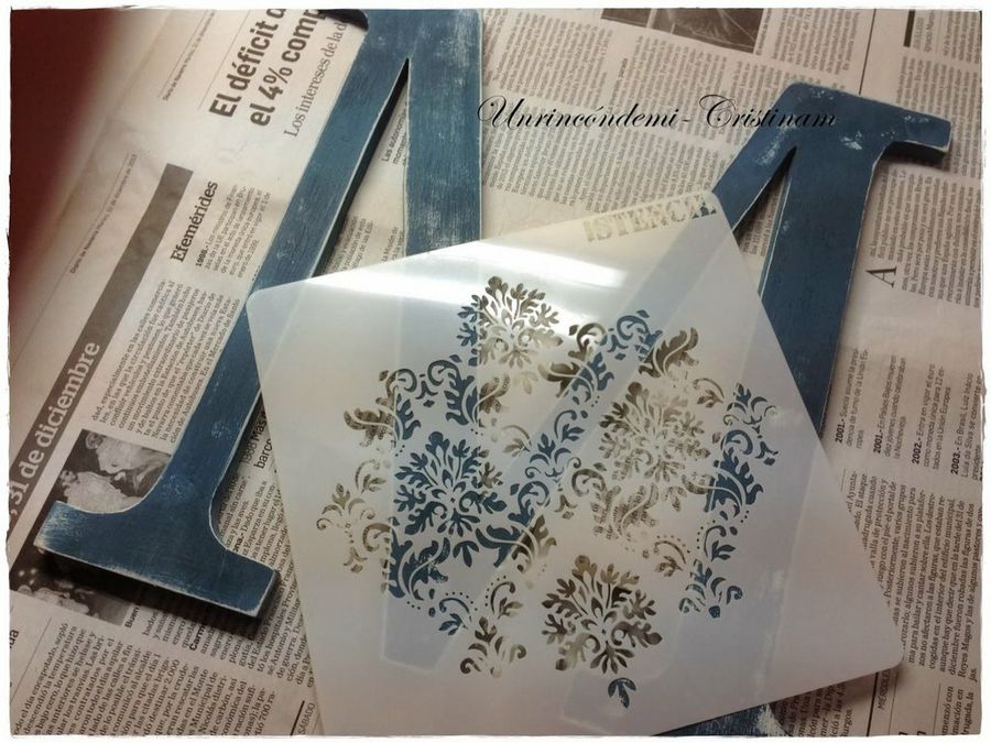 Muchos de vosotros conocéis de sobra técnicas como el estarcido o el decoupage. Con ellas conseguimos grandes cambios en nuestros trabajos. Un mueble sencillo y sin vida puede ganar todo el protagonismo de una estancia. Y, del mismo modo, pueden ser la opción perfecta para decorar nuestras letras de madera, por lo que vamos a recordar, brevemente, los pasos a seguir:Estarcido: