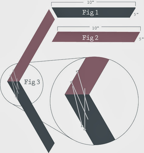 2. Corta tiras de 15 cm de ancho y 30 cm de largo. Los ángulos de cada tira se cortan a 30º manteniendo el lado mas largo a 30 cm. Dependiendo de cuan grande quieras tu estantería, algunos extremos deberían tener ángulos que encajen en lugar de ángulos opuestos.