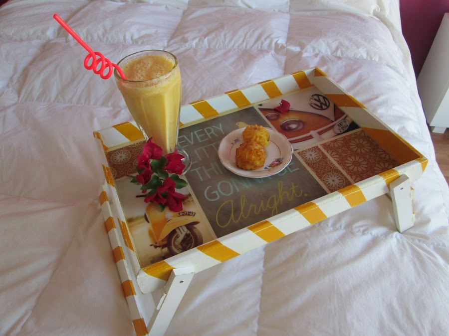 Y ahora si a disfrutar del desayuno o cualquier comida en la cama, en el sillón o en la reposera al sol