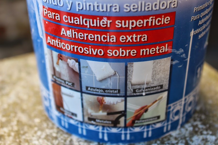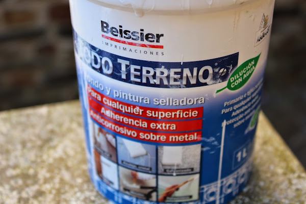 Muchas me habéis preguntado por la imprimación que uso y, en vez de contestar una por una, prefiero hacer una entrada con este tema y contestaros encantada a vuestras preguntas. Como hago trabajos sobre madera,hierro,cristal.... tengo una imprimación para todos, la llaman todoterreno y es esta: