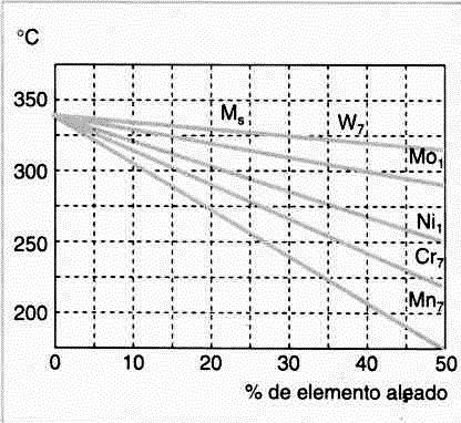 Elementos que modifican los puntos del principio y fin de la transformación de la austenita en martensita.