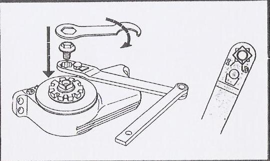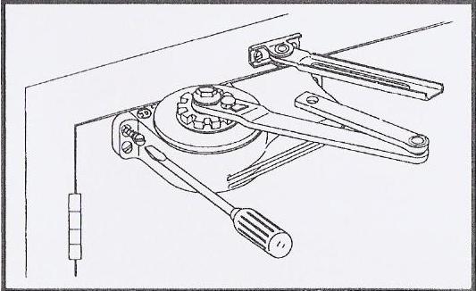 El coliso del brazo secundario permite absorber las diferencias existentes entre marco y puerta. Precarga del resorte.Para tensar el muelle y darle la carga necesaria para cerrar la puerta, debe procederse:Posicionar la llave especial en el arrastre de forma tal que permita el giro en sentido contrario a las agujas del reloj. Tensando ligeramente, levantar el pivote de arrastre del brazo, girar un punto y posicionar de nuevo el pivote. Repetir la operación hasta que el Brazo Automático tenga la suficiente fuerza para cerrar la puerta. Se recomienda no superar los cinco puntos de tensión.