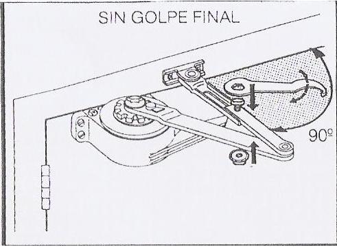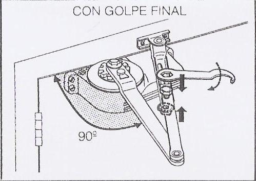 Con golpe fina:Girar el brazo principal hasta que éste se halle perpendicular a la puerta. En esta posición apretar fuertemente el tornillo de fijación mediante la llave especial que se suministra