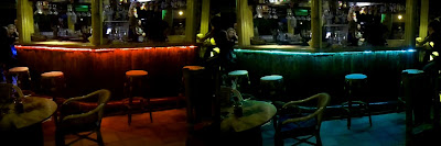 Para los reservados, que consisten en bancos acolchados en semicírculo, utilicé bombillas led multicolores que se van alternando, también con mando a distancia.