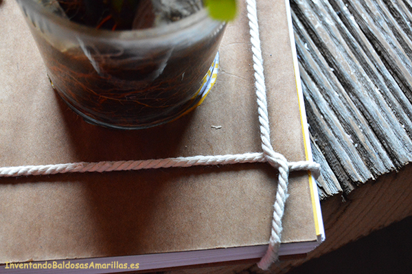 Colocamos las cuerdas alrededor de nuestro macetero.