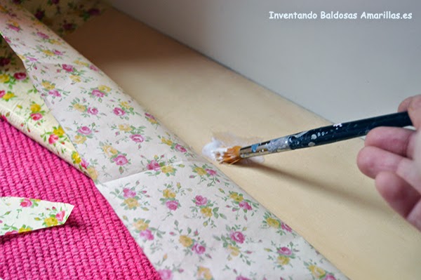 Lo más importante de todo el proceso son dos cosas: tomar bien las medidas, para que el papel tape toda la superficie y estirarlo bien para evitar que salgan arrugas. Aunque cuando el papel es tan fino como éste, resulta casi imposible evitarlas.