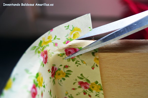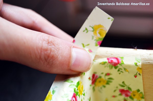 Damos un corte horizontal y adaptamos el papel a la esquina, para que quede completamente forrada como se ve en la fotografía.