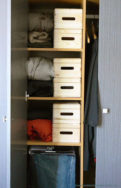Estas cajas vienen sin barnizar y son perfectas para poder decorarlas de la forma que más nos guste. Creo que tienen un montón de posibilidades. ¿Qué os parecen? Podemos sustituir las cestas de mimbre por cajas de madera que nos permiten aprovechar el espacio.