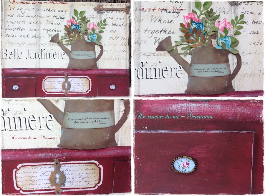 La parte baja he querido imitar a un mueble, para ello me he ayudado de regla , stencil y con efectos de sombras he consigo algo parecido a lo que yo quería.