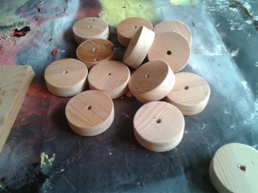 Discos hechos con corona y taladro. Yo he hecho 16 y me encanta que haya tantos en el tablero, porque mete más presión al jugador. Hay que probar para sentir lo que digo.