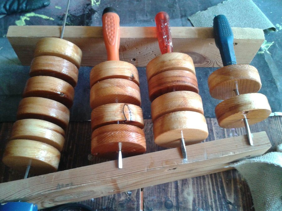 Barniz para los discos, los pinté con barniz claro, a gusto de cada uno.