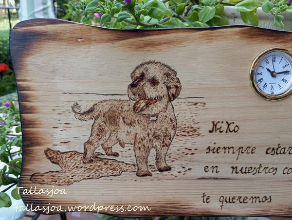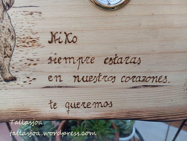 Como veis , en esta ocasión no se trata de una talla sino una pirografía dedicada a Kiko, el tiempo de lo llevó, pero su familia sabe que permanecerá con ellos para siempre