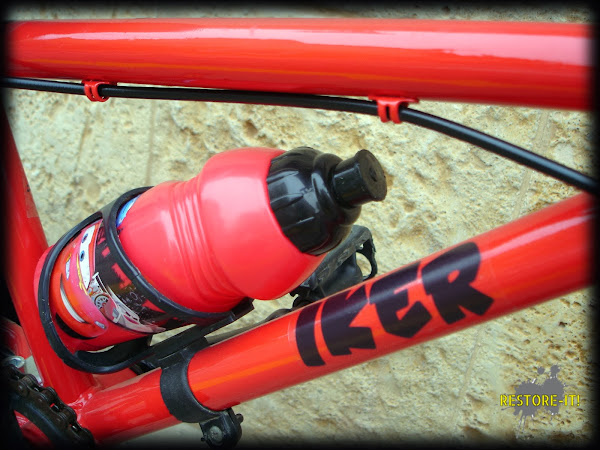 En esta ocasión no hemos querido mantener el estado original de la bicicleta, si no que hemos realizado toda una transformación y personalización de la misma. Pasando su cuadro de colores flúor a otros mucho más actuales y acorde con los gustos de su destinatario y cambiando toda una serie de componentes por otros más modernos y funcionales.