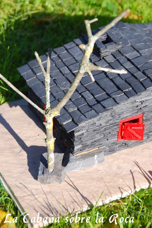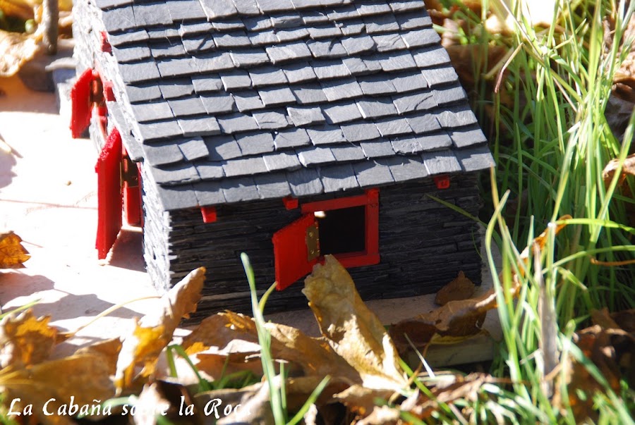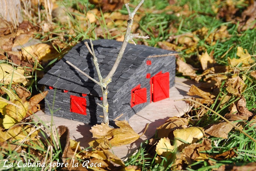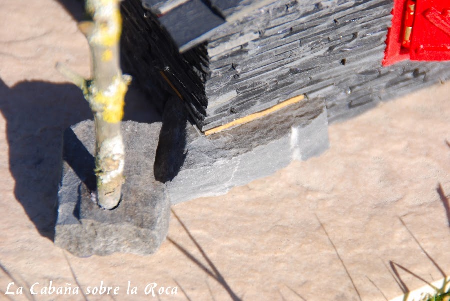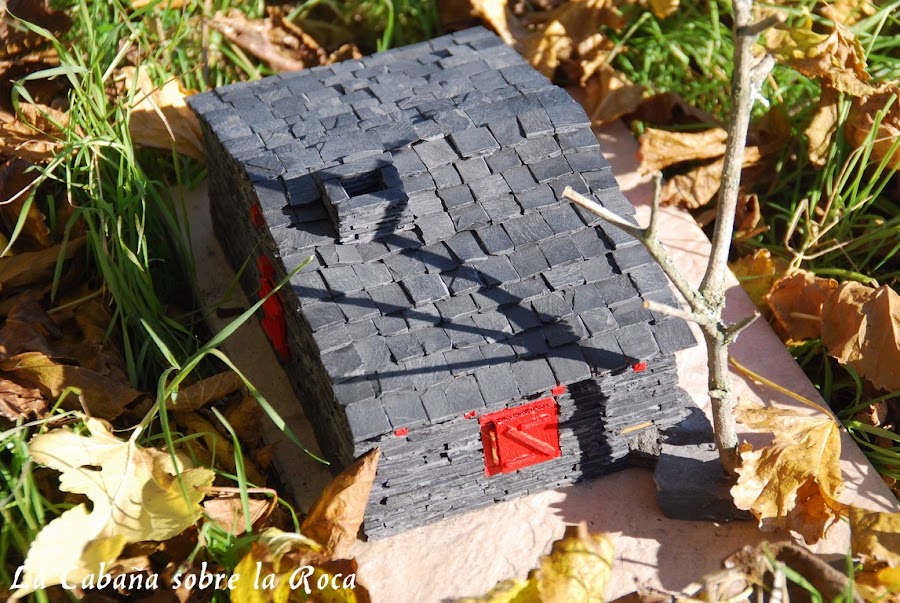 Otra cosa que la diferencia es que le coloqué una piedra de pizarra en una esquina como si la casa estuviese construida sobre ella, de ahí su nombre.