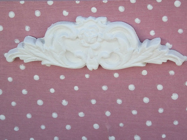 Cuando estuvo bien seca la pintura pasé una lija muy suavemente para que no se notaran los puntitos al tacto y le coloqué dos molduras de escayola como único complemento decorativo.