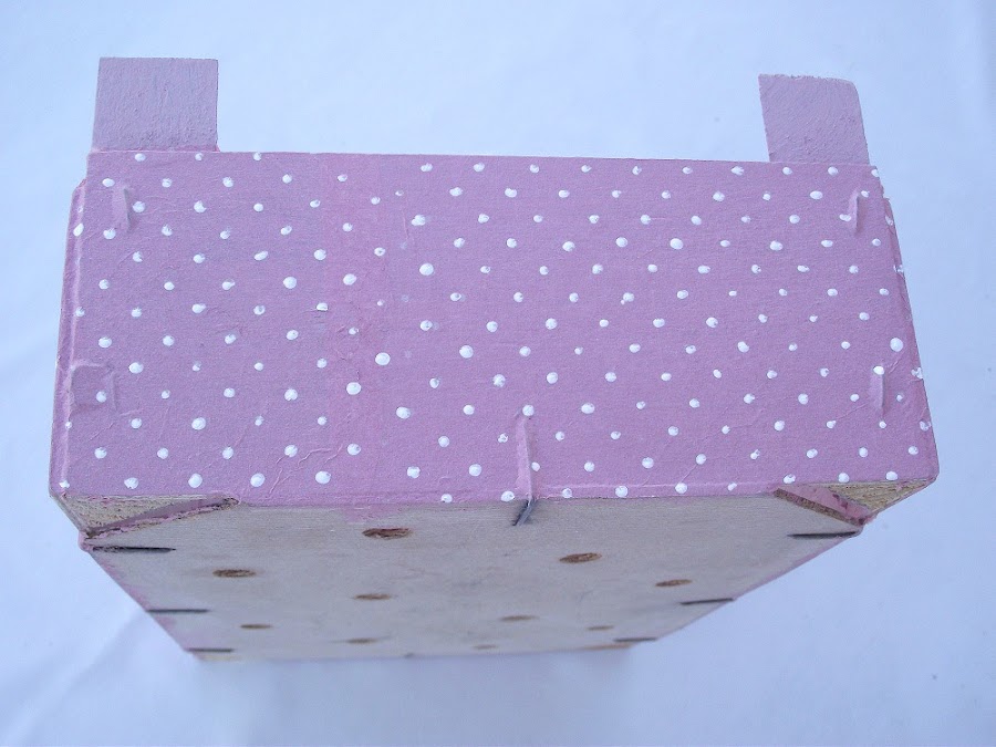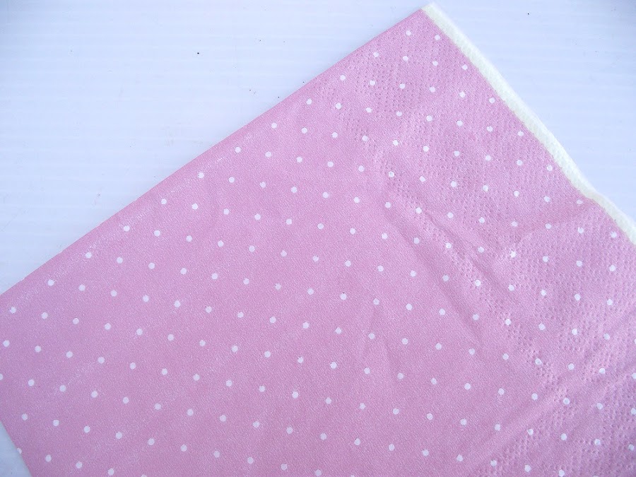 Quedó muy bien, porque el tono de rosa de la pintura es casi igual que el de la servilleta, pero el problema es que los topitos apenas se distinguían, aquí os lo muestro: