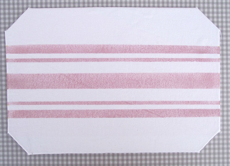 Al tener la brocha tan escurrida las líneas no quedan coloreadas uniformemente, con lo cual se consigue un aspecto en la tela parecido al decapado de la madera.