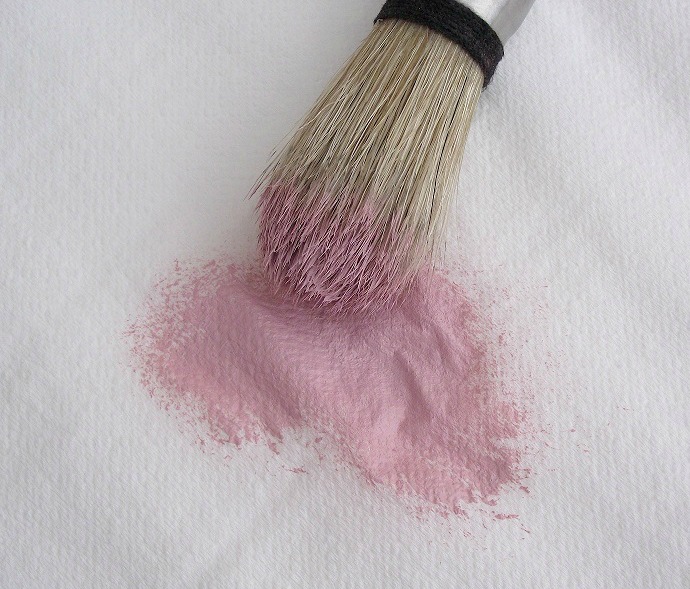 Para pintar es imprescindible (igual que cuando hacemos estarcido) que la brocha esté bien escurrida, para que la pintura no se cuele por debajo de la cinta y haga borrones. Es preferible pasar muchas veces con la brocha casi seca, de ahí el nombre de la técnica.