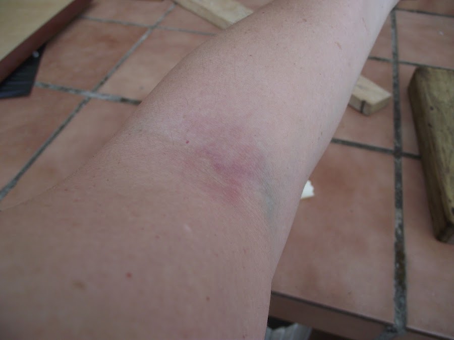 No fue difícil limpiarla porque salía con mucha facilidad, no tenía barniz y apenas con frotar un poco con el estropajo iba saliendo el agua casi negra y dejando limpia la madera. El problema de la sosa es que aún con guantes, delantal y toda la protección posible me acabé quemando un brazo, porque una de las piezas me resbaló y fue a parar a la parte interna del codo, donde la piel es más sensible. ¡¡Ayy, que afición ésta tan trabajosa jaja!!.
