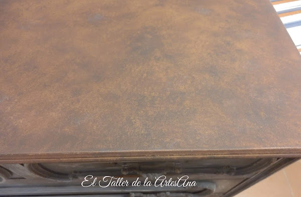 Nuestra clienta nos pidió que la parte superior fuera en otro color pero quería algo especial, así es que se me ocurrió darle un aspecto metálico pero oxidado a base de pinturas. Quedó genial!!!