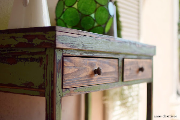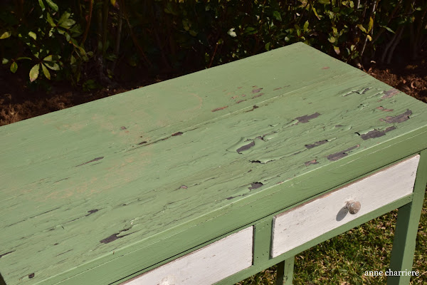 Llevaba un tiempo en el portal de casa, parcialmente expuesta a la intemperie con lo que se estropeó la última capa de pintura que le puse y de hecho, hice un descubrimiento respecto a los componentes de ciertas marcas de pintura... Nada negativo pero muy bueno saberlo para la próxima vez que pinte muebles de exterior con tal o tal marca. Os adelanto que este post NO está patrocinado por ninguna marca; sólo comparto opinión de lo que voy usando, para el/la que lo quiere leer.