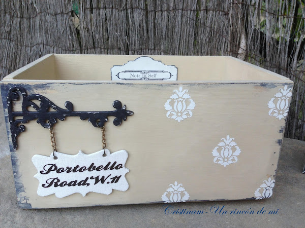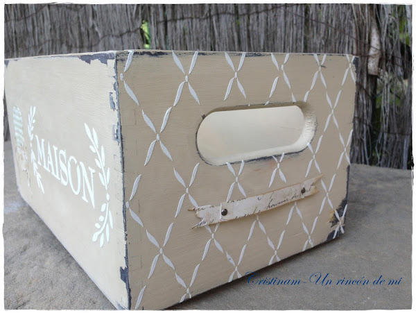 El cajón tiene decoración de stencil por todos los laterales... he disfrutado mucho eligiendo con cuidado los que me gustaban .