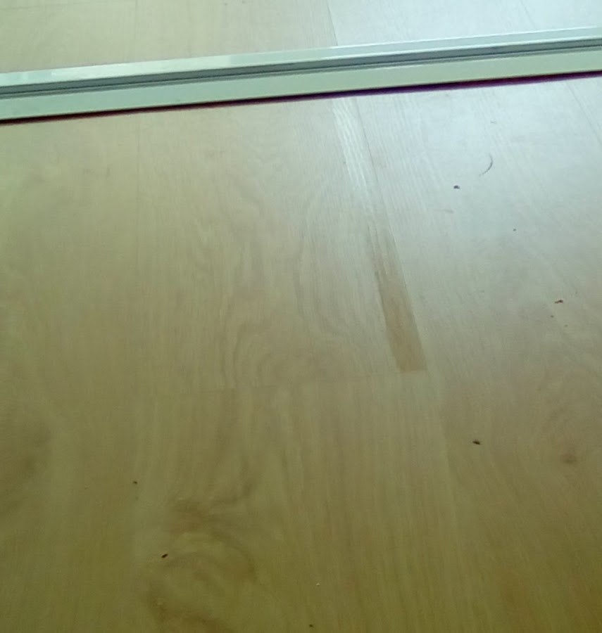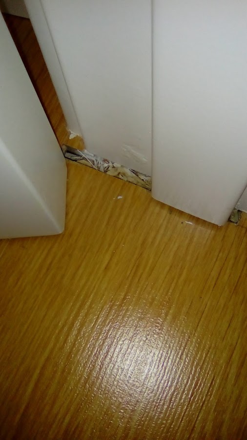 Lo que se ve en estas fotos es como la tarima a dilatado en tan solo un mes (de Junio a Julio), dejando huecos en los marcos y tramos atestados contra la pared.