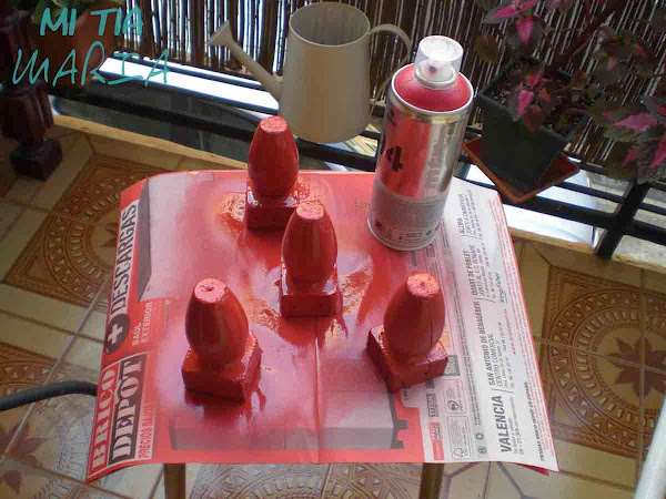 Las patas y el fondo por la parte de fuera del baúl las pinté con pintura en spray.