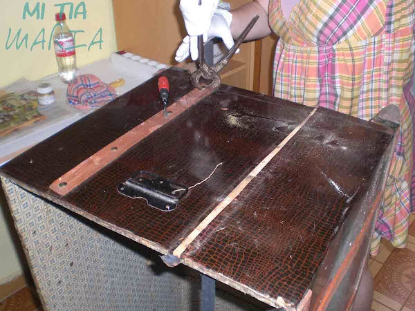 Lo primero que hice fue quitarle la hoja de lata que lo cubría y decoraba. Con cuidado y paciencia, ya que este material es altamente cortante.