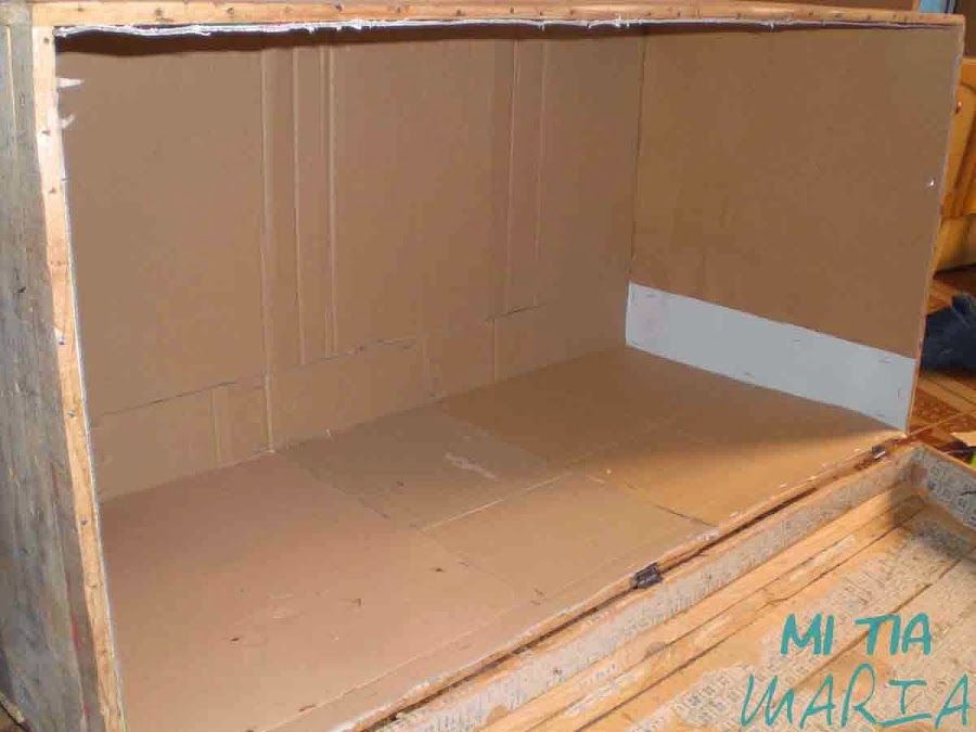 Primero lo forré con cartón, para evitar que entre el polvo. Asegurando después las juntas con cinta de pintor.