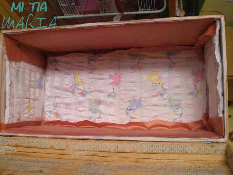 Después lo forré con un edredón viejo (con los tozos que me sobraron del joyero) como dentro va ropa de cama y toallas quería que quedara mullidito, no sé, manías que no curan los médicos.