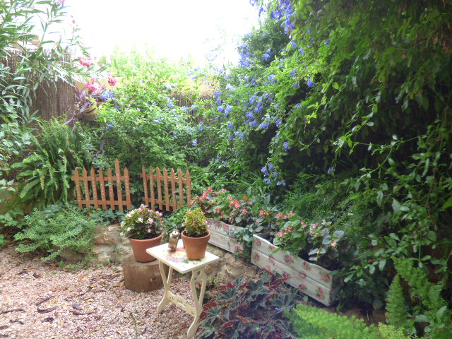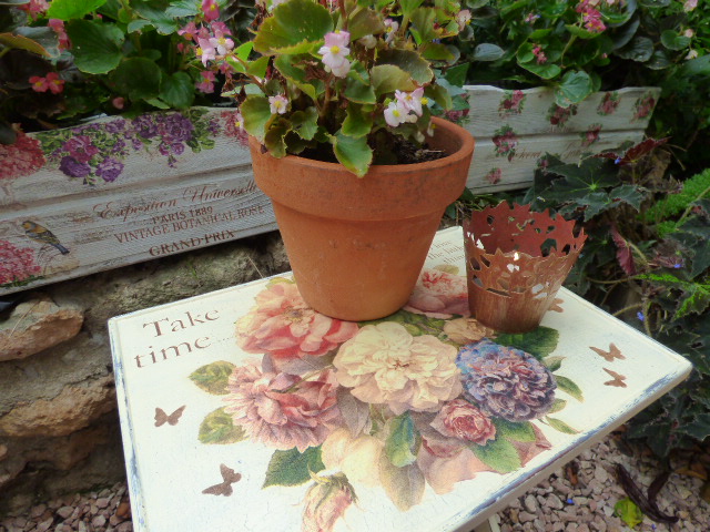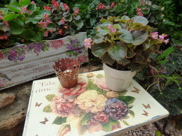 En algunas fotos salen las jardineras que hice a principio de verano estan preciosas con las Begonias en flor. De momento siguen en perfecto estado supongo que gracias a las varias capas de barniz que le sdí