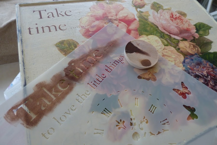 Sólo he puesto los textos y las mariposas porque añadiendo el reloj veía que iba a quedar muy recargado