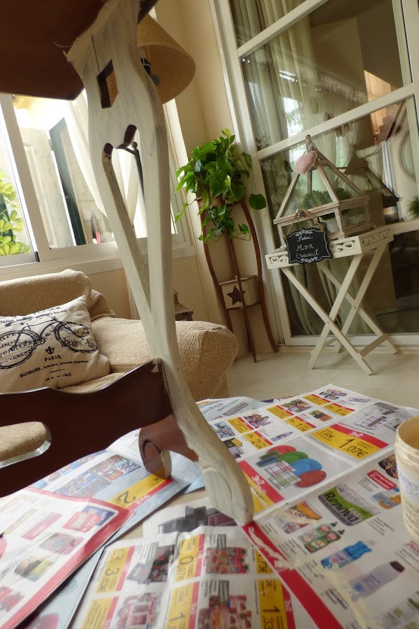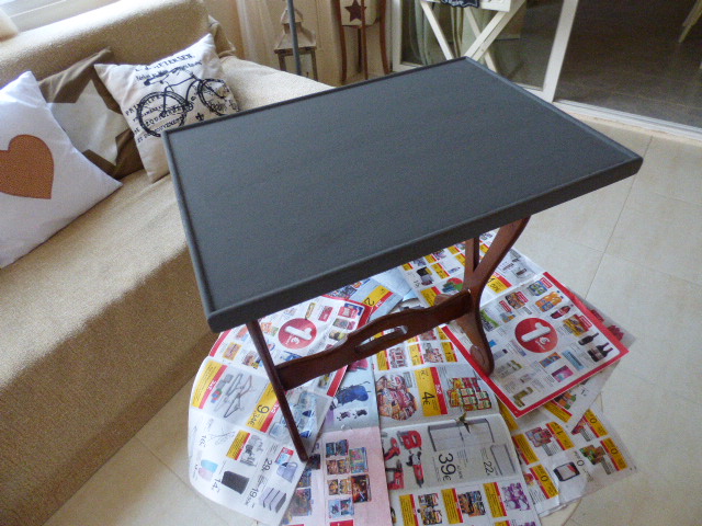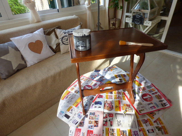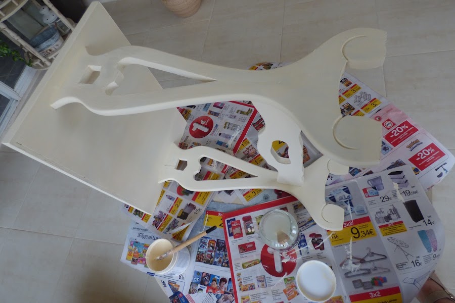 Sin lijar, ni dar imprimación he pintado totalmente la mesita, por todas partes.