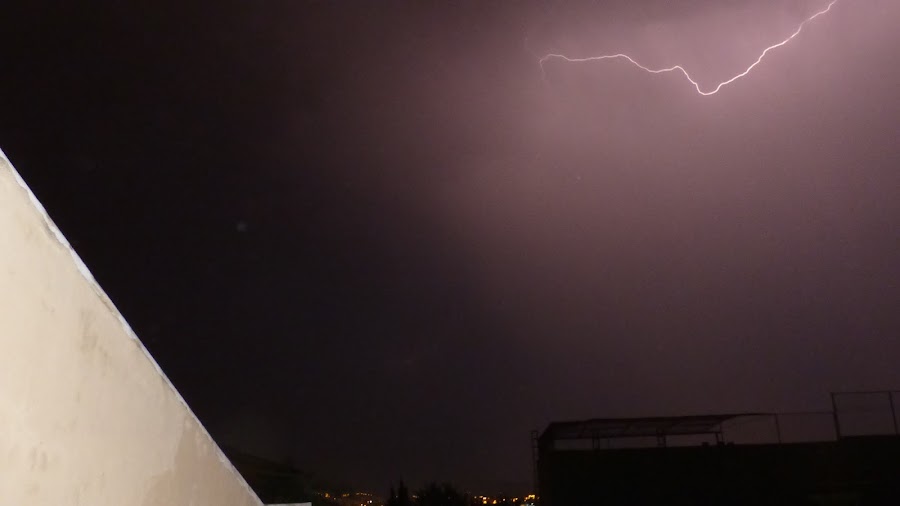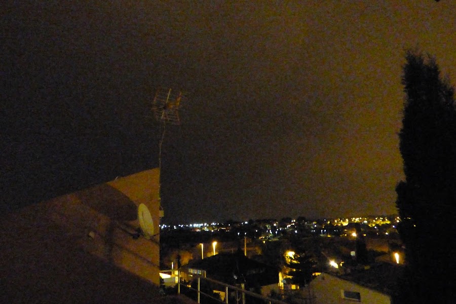 Hubo una tormenta enorme la otra noche y mis hijos se subieron a la terraza de la buhardilla, cámara en mano, para intentar hacer fotos de los rayos. Cambiaron la configuración de la cámara y cuando yo la cogí para seguir con mi tuneo no me dí ni cuenta.....aquí entre nosotras....yo es que eso ni lo miro...la cojo, la enciendo y empiezo con las fotos.
