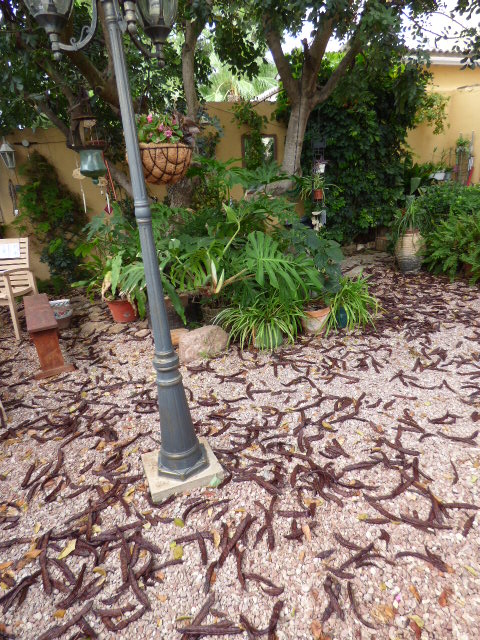 MIrad cómo está el jardín después de semejantes tormentas. Con el viento que hizo acabaron de caer todas las algarrobas del árbol. Tenemos faena a manta....