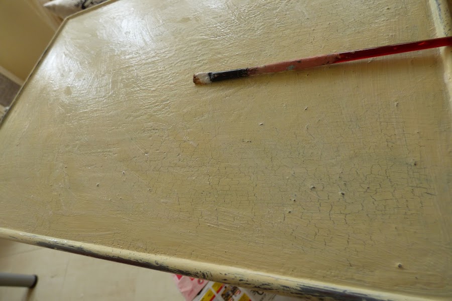 Una vez seca la pintura oscura, he extendido una capa de craquelador y la he dejado secar completamente.