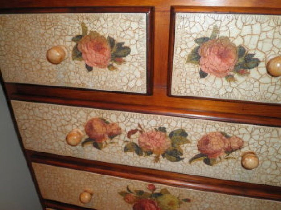 Por último, aquí tenéis el estupendo lavado de cara que Arborada realizó a una cajonera, lo que considera su “primer trabajo un poco más grande y complejo”. Utilizando las técnicas del craquelado (reproducir grietas en la pintura) y el decoupage (estampación de dibujos sobre una superficie) consiguió un nuevo mueble muypersonalizado y original.