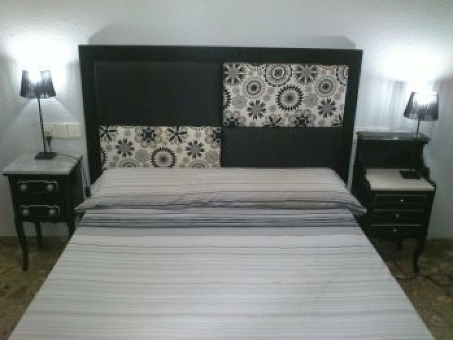 Laurvic ha compartido con nosotros lo que considera su primer trabajo, un cabecero para cama de matrimonio que realizó a partir de cuatro tableros tapizados, y su primera restauración, dos preciosas mesillas que rescató y adaptó para colocar junto al cabecero.
