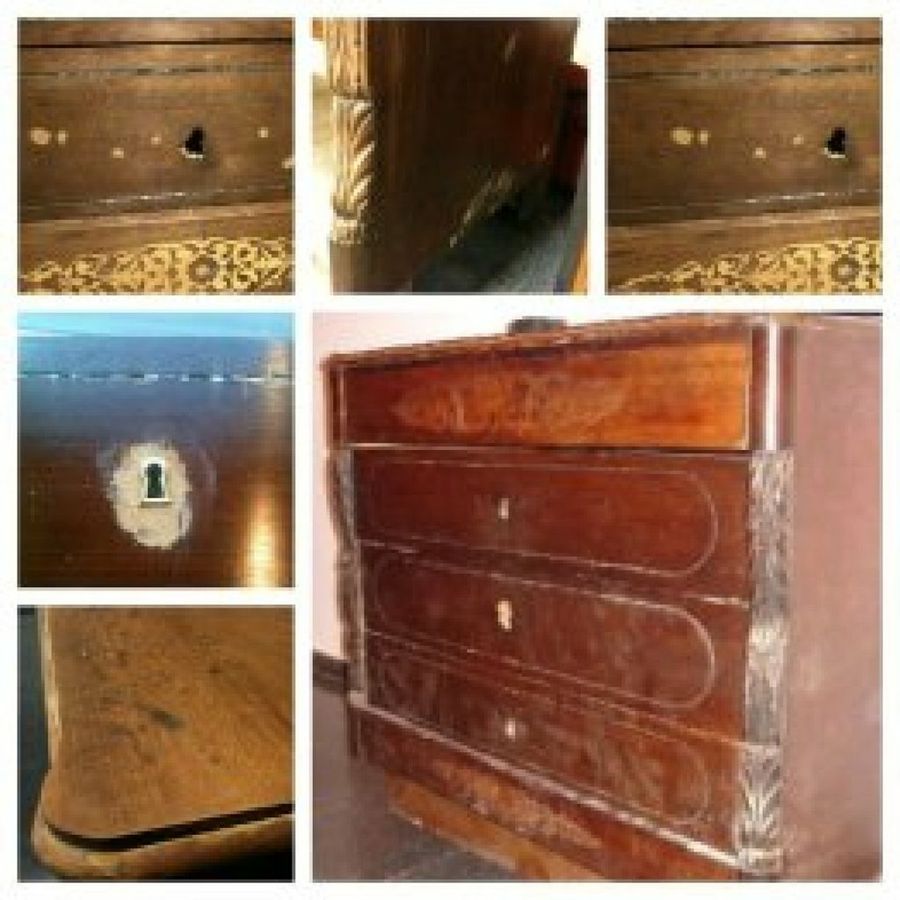 Mar_chico nos ha enseñado esta cómoda de estilo imperio que, según nos cuenta, tiene ¡más de 200 años de antigüedad! Un duro y delicado trabajo que ha realizado a medias con una amiga, que demuestra, una vez más, que el esfuerzo vale la pena y tiene su recompensa.