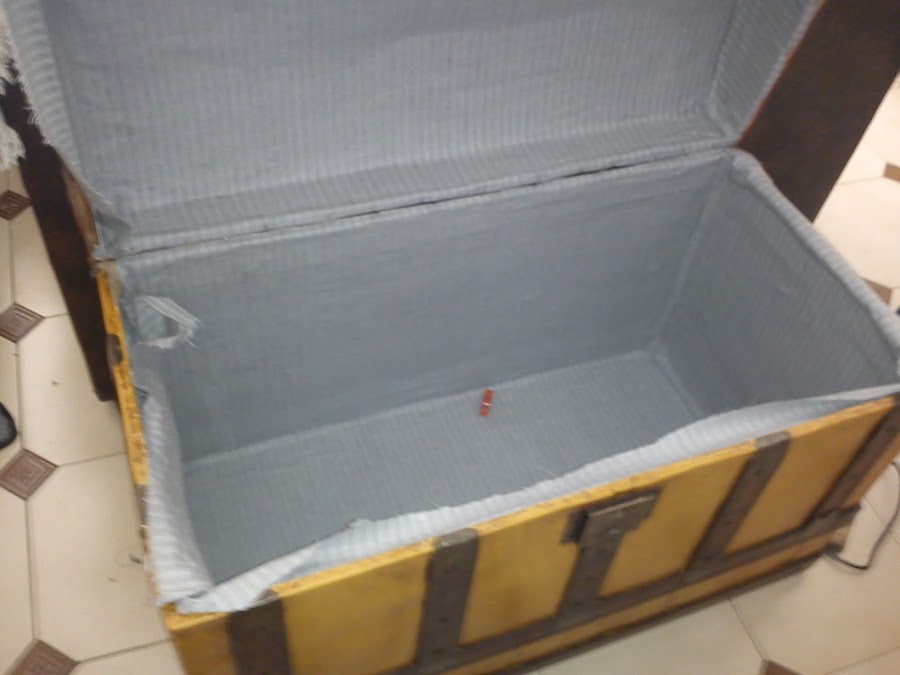 Tras rematarlo todo bien con grapas, dimos el trabajo por finalizado, y así es como quedó el baúl.