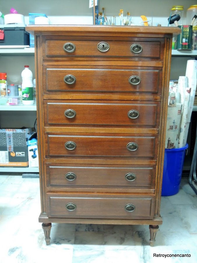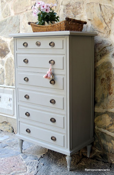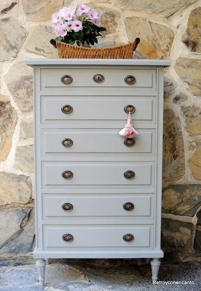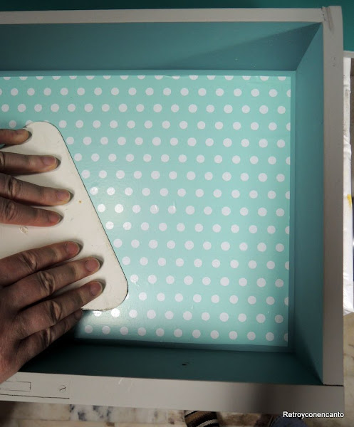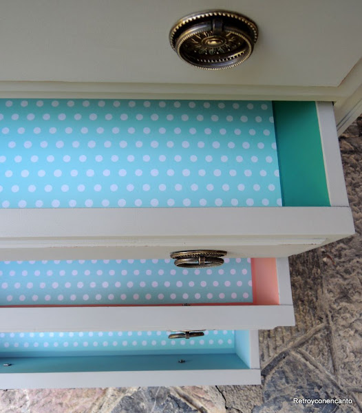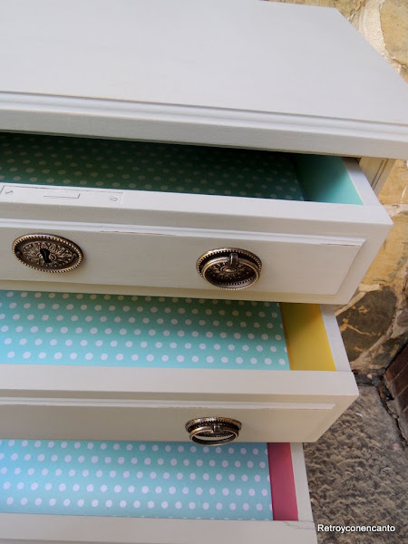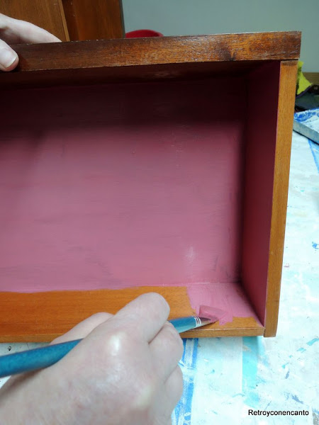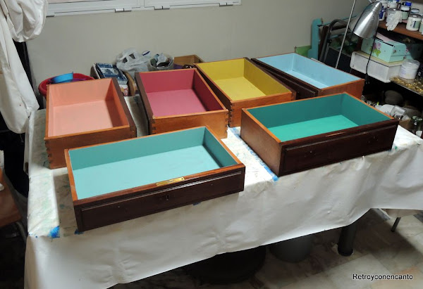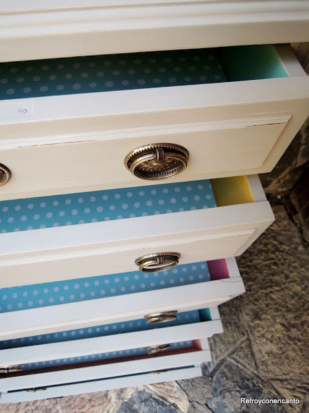 ..., que comenzamos a pintar por los cajones. La dueña del mueble no dio directrices para el interior del mueble, así que, en plena inspiración, nos decantamos por...