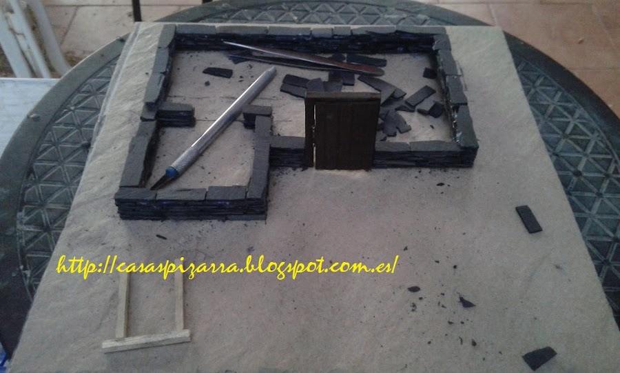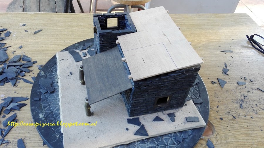 Tanto el tejado de la casa como el de la torre me dio mucho que pensar ya que no tenía claro como rematarlos, esta fue la solución que tomé.