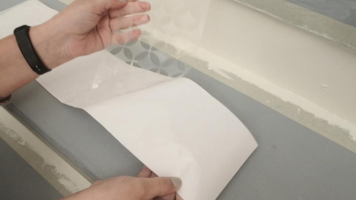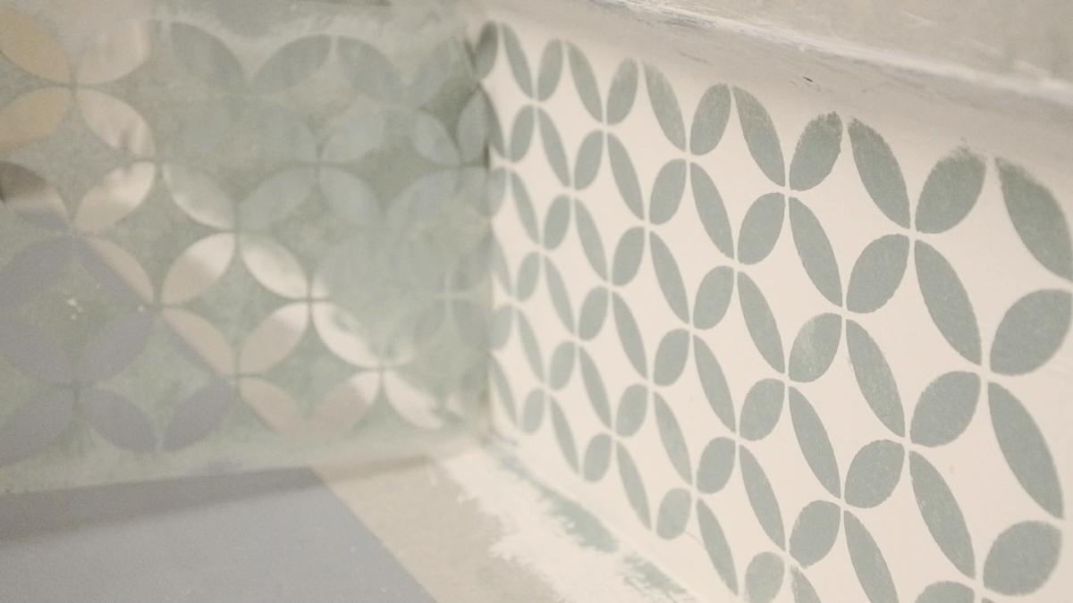 El stencil lo cortamos nosotros mismos con ayuda de Silhouette. Esto nos vino genial para poder cortarlo al ancho del escalón y por lo tanto que nos fuera más fácil a la hora de pintar.