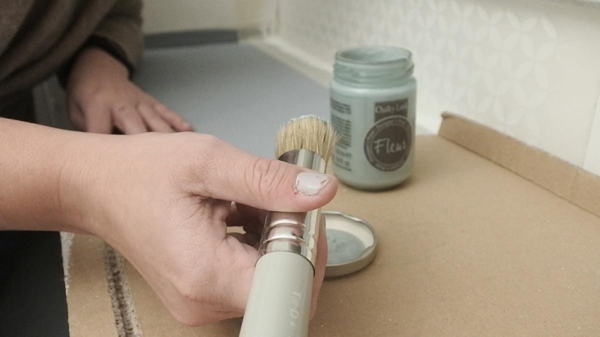 Para pintarlo, por supuesto lo hemos hecho con el pincel de estarcir y un color super bonito como es Malmo Green.