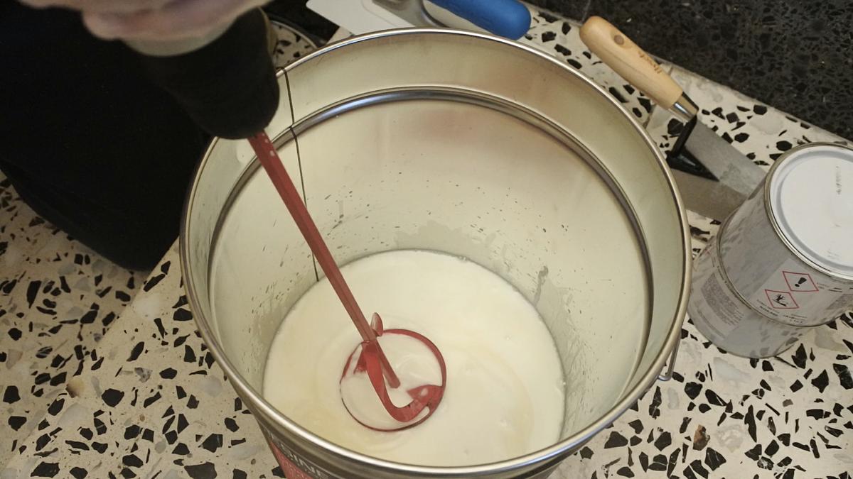 Por supuesto es muy importante mezclar bien ambos componentes. Lo aplicamos por toda la superficie y para ello utilizamos un rodillo de microfibra que es el que recomienda el fabricante.