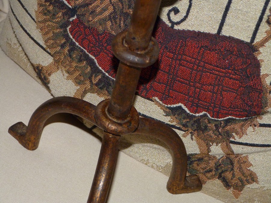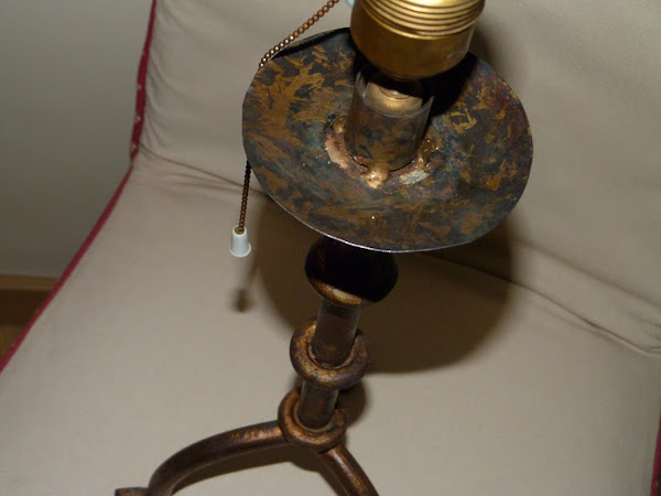 Yo no sé cómo sería originalmente... difícil saberlo, con tantas capas marrones, negras, doradas... y bastante óxido también. Pensaréis que estoy loca, pero estuve a punto de dejar el pie tal y como estaba... me vuelven loca las cosas viejas, y si están oxidadas, más todavía jjajajaja. Me cuesta quitarles todas esas marcas del paso del tiempo y de su historia, y más cuando tienen un significado sentimental.