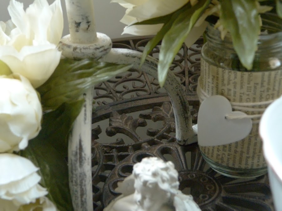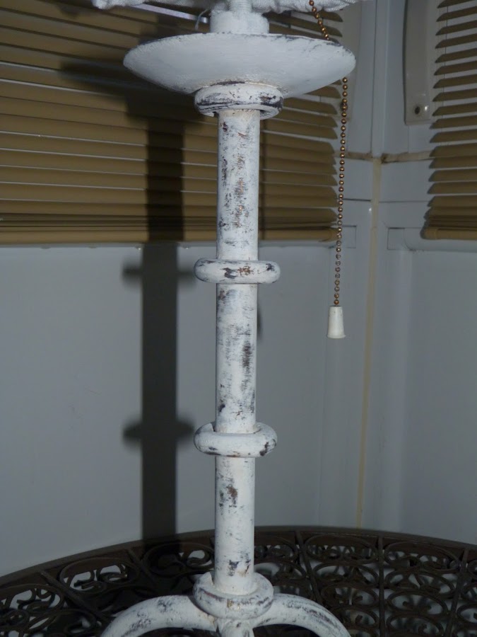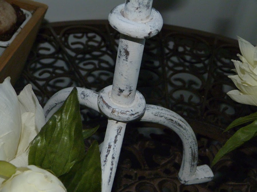 Así que me costó eh?, y mucho, pero por fin me decidí. Después de una buena limpieza, la lijé a conciencia... bueno, no tanto, porque no quería retirar todo el óxido... Después le di una mano de chalk paint blanca. Volví a lijarla, y a pintarla...