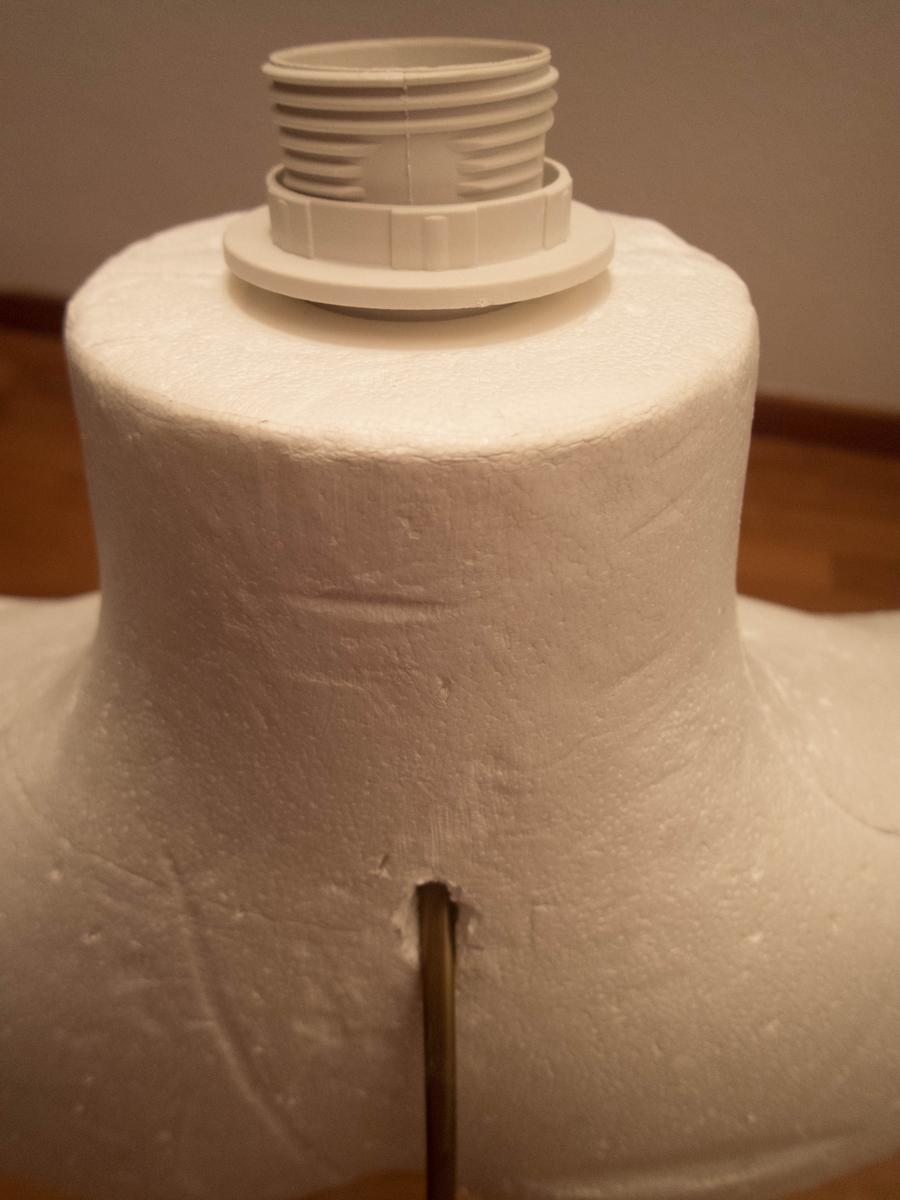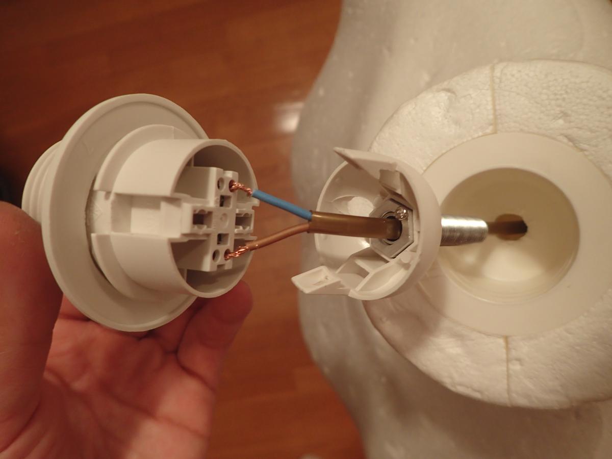 A tal fin necesitamos un casquillo para la bombilla con un enganche metálico a rosca (para que quede fijo dentro del maniquí), un interruptor, un enchufe y cable.